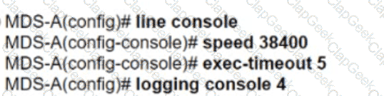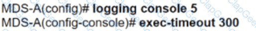 A network engineer needs to configure system logging on the Cisco MDS Series Switch. The messages must be displayed with the severity level of "warning" and above. For security reasons, the users must be logged out of the console after 5 minutes of inactivity. Which configuration must be applied to meet these requirements?