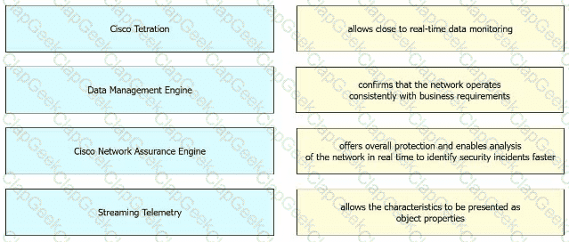 Drag and drop the network assurance concepts from the left onto the corresponding benefits on the right.