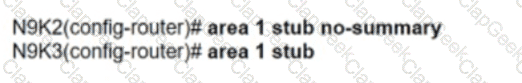 Refer to the exhibit. The router R1 and N9K1 establish EIGRP neighborship. R1 is advertising network 10.1.1.15/32 to N9K1 and N9K2 and N9K3 are forming the OSPF neighborship over area 1 Which configuration prevents N9K3 from receiving external LSA for network 10.1.1.15/32?