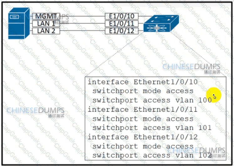 A Cisco Unified Computing System environment must be configured for a server that requites access to VLAN 30 for data and VLAN 40 for management The server must have failover capabilities The upstream connectivity will be provided by using a Cisco Nexus 9000 Series Switch. Which action must be taken to meet these requirements?