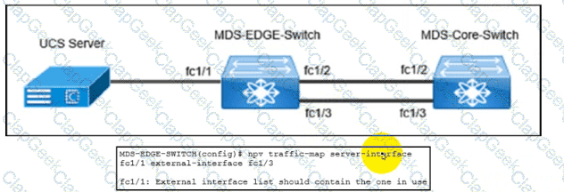 Refer to the exhibit. The MDS-EDGE-Switch and MDS-Core-Switch are configured with NPV and NPIV features The FLOGI from Cisco UCS is received by the MDS-Core-Switch on interface fc1/2. An engineer tried to move all traffic between the MDS-EDGE-Switch and MOS-Core-Switch from interface fc 1/2 to fc1/3, but the attempt failed. Which set of actions completes the configuration?