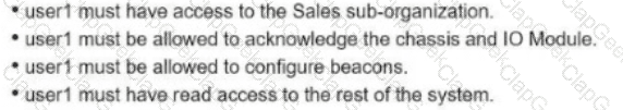 Refer to the exhibit. An engineer must configure a new user name called user 1 in a UCS domain hosting multiple sub-organizations The security policy mandates that the role of admin cannot be used The user name must have these permissions:
