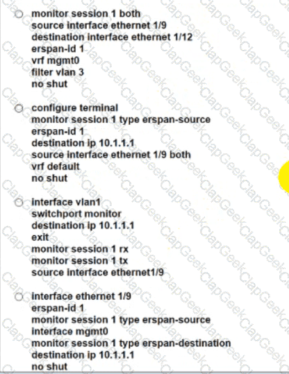 An engineer must configure a Cisco MDS 9000 Series Switch for traffic analysis from the storage array. The storage array is connected to the interface fc2/1 in VSAN 10 and the traffic analyzer to fc4/2. The capture file must include ingress and egress traffic between the switch and the storage array. Also, only traffic in VSAN 10 must be captured. Which configuration set meets these requirements?