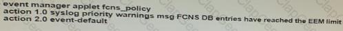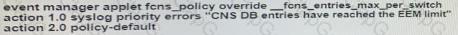 AN engineer is asked to modify an overridden policy by changing the number of FCNS database entries to 1500 and then generable a massage. What configuration will accomplish this task?