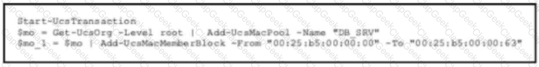 Refer to the exhibit. The PowerShell script uses cmdlet to create the MAC pool resource on the Cisco UCS Manager. Which command resolves the issue?