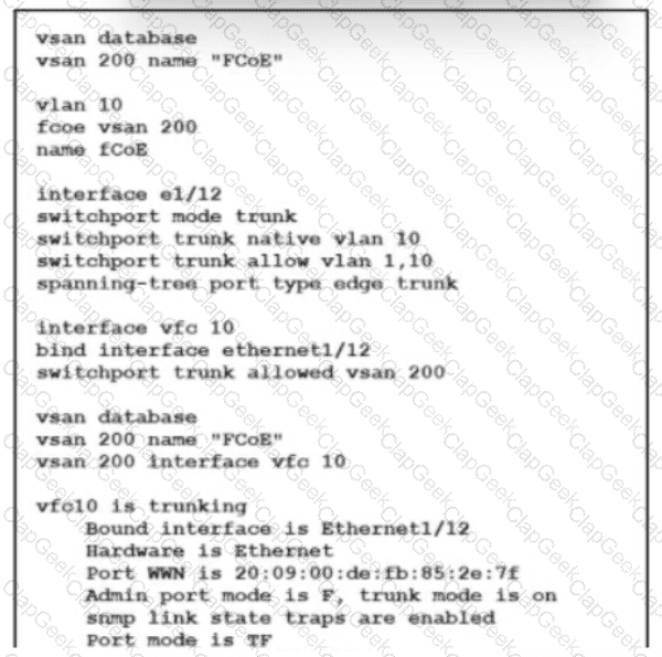 Refer to the exhibit. An FCoE-attached storage connects to a Cisco Nexus 9000 Series Switch on interface ethernet1/12. After the configuration was performed. VSAN 200 failed to activate on the vfc interface. Which configuration action must be performed to bring up VSAN 200?