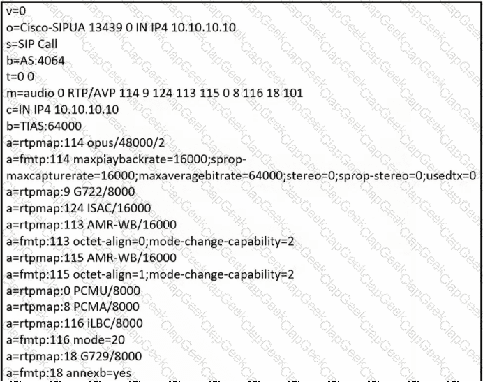 A Cisco IP Phone 7841 that is registered to a Cisco Unified Communications Manager with default configuration receives a call setup message. Which codec is negotiated when the SDP offer includes this line of text?