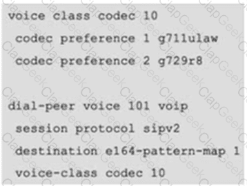 An engineer must configure codec on a Cisco Unified Border Element to prefer the G.711 ulaw and use G.711 codec as the