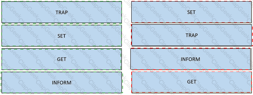 Drag and drop the SNMPv3 message types from the left onto the corresponding definitions on the right.