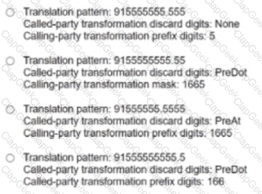 An engineer must configure a new Cisco UCM translation pattern to convert 915555555555 into 1665 Which translation pattern must be used?