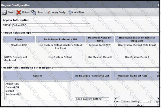 Refer to the exhibit. Which codec should an engineer select for a call mode between “Dallas- REG” & “Austin-REG”?
