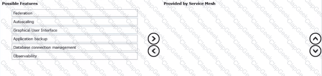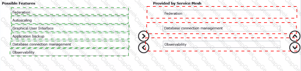 Drag and drop the three features into the correct order from Possible Features list on the left and place them into the Provided by Service Mesh on the right side. (Choose three.)