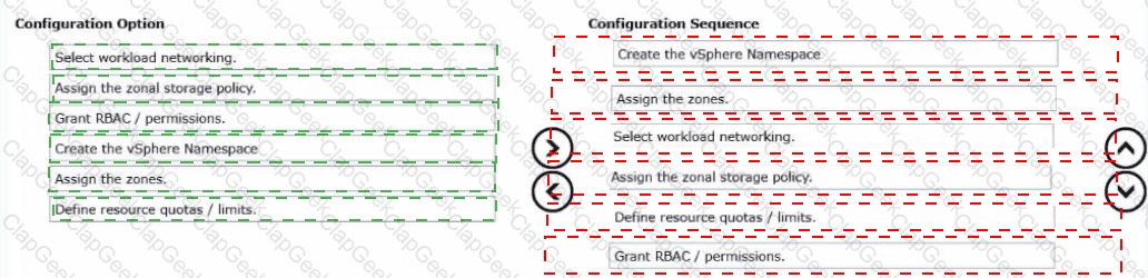 Drag and drop the six actions into the correct order from Configuration Option list on the left and place them Into the Configuration Sequence on the right.