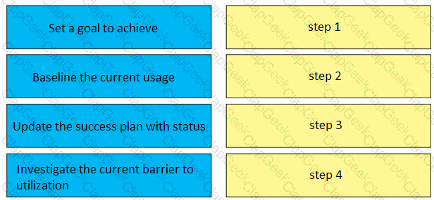 The customer wants to increase the utilization of their video conferencing system. Drag and drop the actions from the left into the correct sequence on the right.