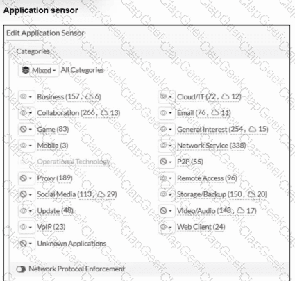 You have implemented the application sensor and the corresponding firewall policy as shown in the exhibits.