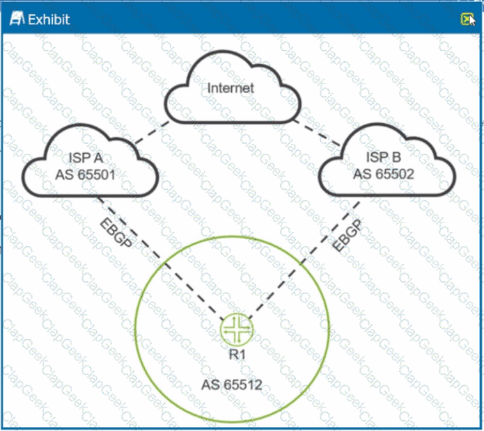 You are receiving the same BGP Internet routes on R1 from both upstream ISPs. You are asked to load-balance traffic destined to the Internet across both ISPs.