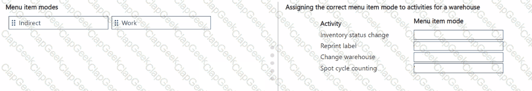 Which menu item mode should you use for each activity? To answer, move the appropriate menu item modes to the correct activities. You may use each menu item mode once, more than once, or not at all. You may need to move the split bar between panes or scroll to view content.