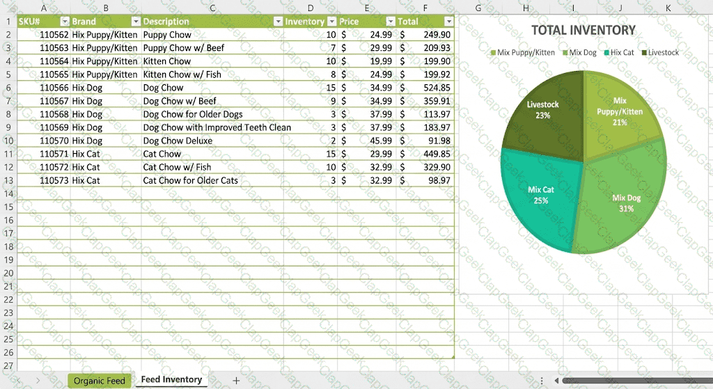 You are the assistant manager for a farm pet feed store. You are creating an inventory report.