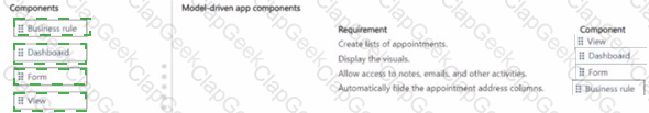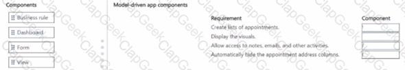 You plan to implement a model-driven app for a company. Employees will use the app to manage appointments with customers. The app must meet the following requirements: