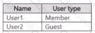 You have Microsoft 365 E5 tenant that has a domain name of 86s40q.ofimicrosoft.com. The tenant contains the users shown in the following table.