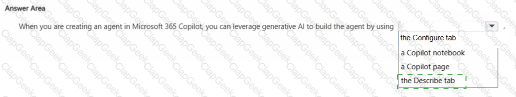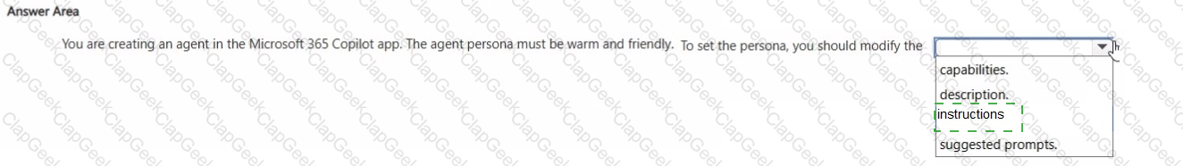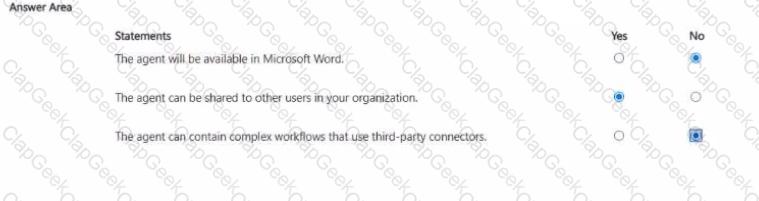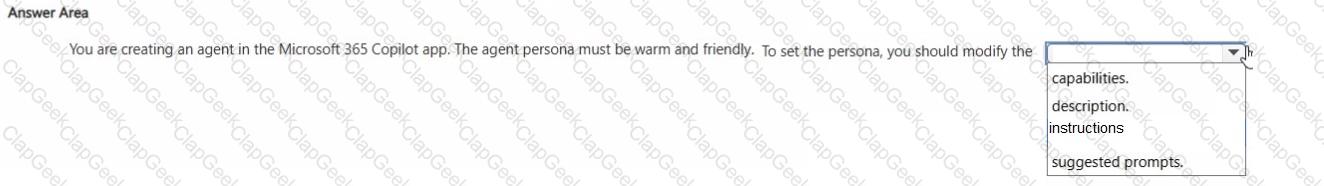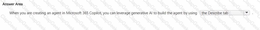 You plan to create an agent by using the Microsoft 365 Copilot app.