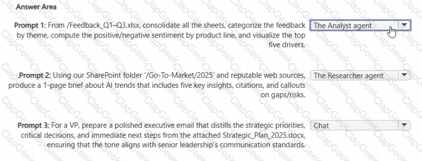You are creating a custom analytics agent in the Microsoft 365 Copilot app. The agent will use Microsoft Excel files that contain sales data as knowledge.
