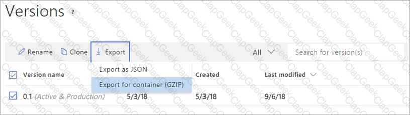 You plan to use a Language Understanding application named app1 that is deployed to a container.