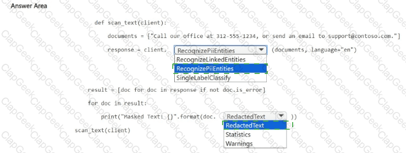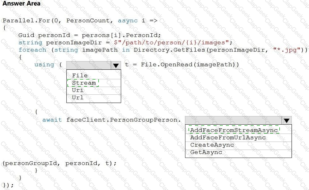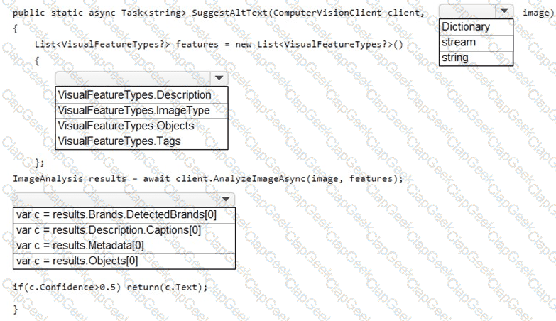 How should you complete the code? To answer, select the appropriate options in the answer area.