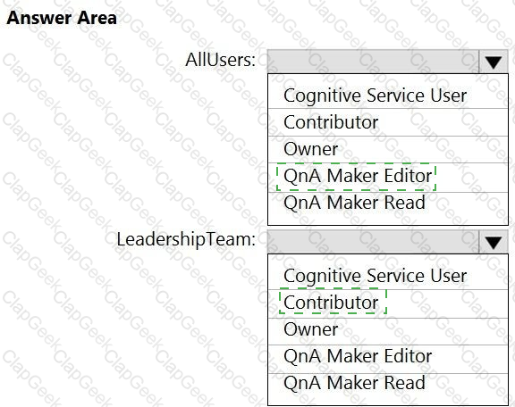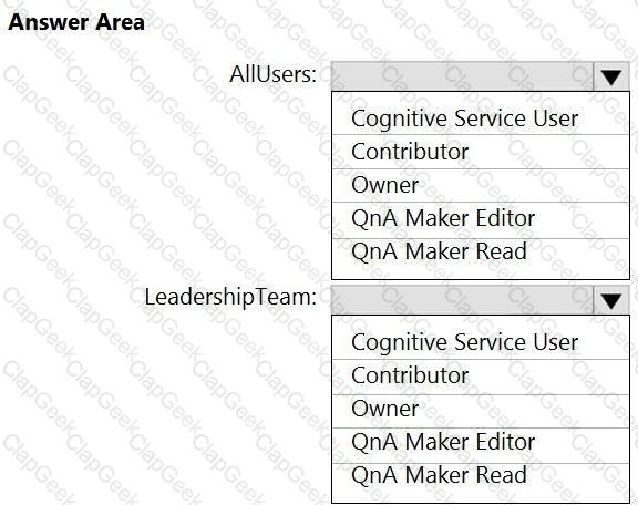 Which role should you assign to AllUsers and LeadershipTeam? To answer, select the appropriate options in the answer area.
