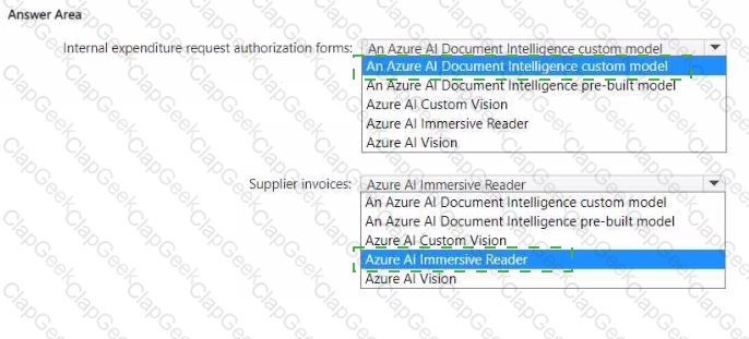 You need to recommend which Azure Al service to deploy for the following types of documents: