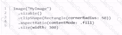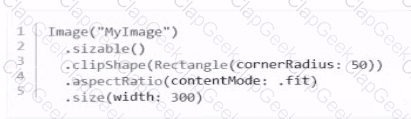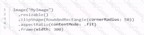 Which code correctly creates a size 300 rectangular Image View with rounded corners that displays the entire image, regardless of size?