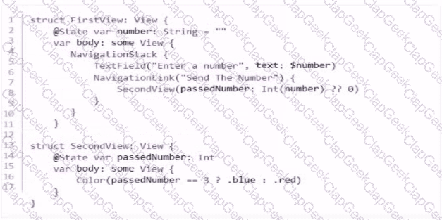 When entered into the TextField, which number will display a blue canvas on the SecondView?
