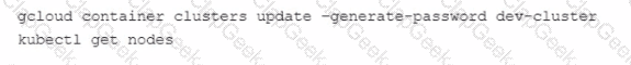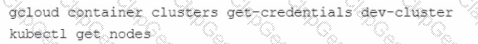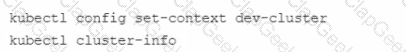When you run the Kubect1 get nodes command, you only see the nodes from prod-cluster Which commands should you run to check the node status for dev-cluster?