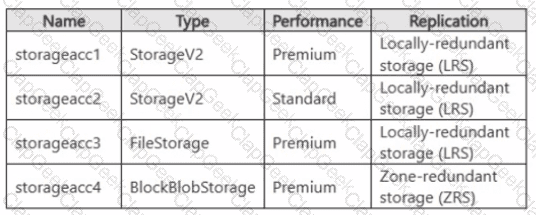 You have an Azure subscription that contains an Azure Virtual Desktop deployment and the storage accounts shown in the following table.