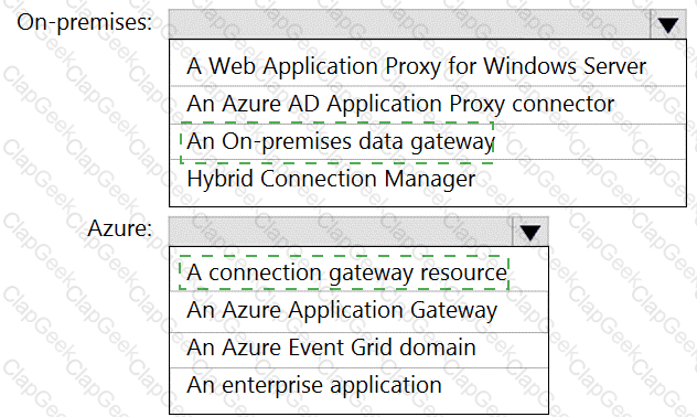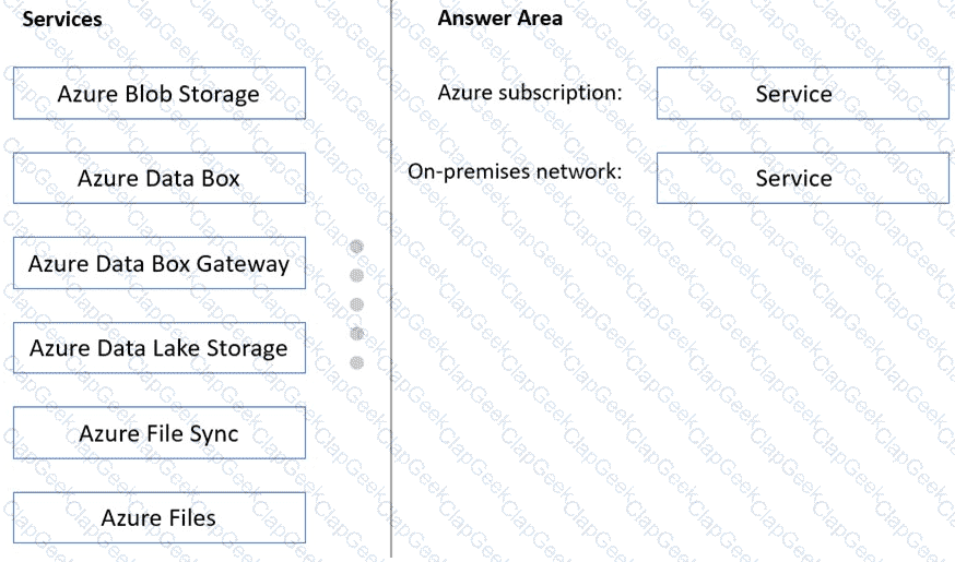 What should you deploy to the Azure subscription and the on-premises network? To answer, drag the appropriate services to the correct locations. Each service may be used once, more than once, or not at all. You may need to drag the split bar between panes or scroll to view content.