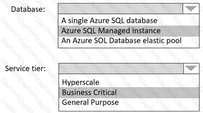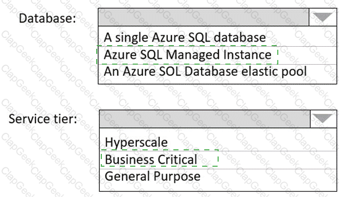 You need to recommend an Azure SQL product and service tier that meets the following requirements: