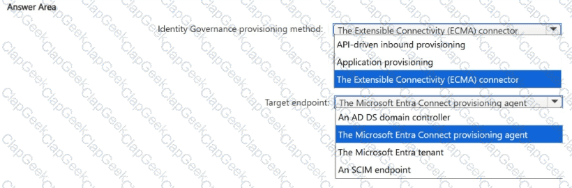 • When employees are added to App1, the user accounts of the employees must be provisioned to the AD DS domain and the Microsoft Entra tenant automatically.