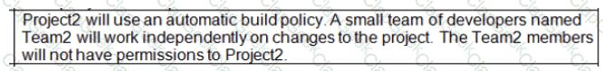 You need to implement the code flow strategy for Project2 in Azure DevOps.