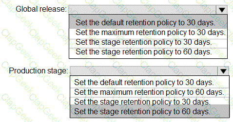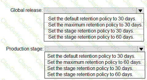 How should you confrere the release retention policy for the investment planning depletions suite? To answer, select the appropriate options in the answer area.