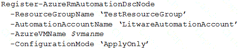 To resolve the current technical issue, what should you do to the Register-AzureRmAutomationDscNode command?