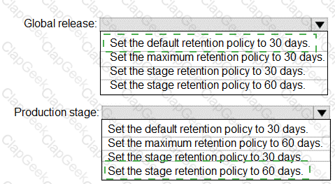 How should you configure the release retention policy for the investment planning applications suite? To answer, select the appropriate options in the answer area.