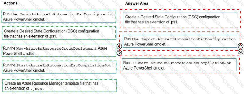 Which three actions should you perform in sequence? To answer, move all actions from the list of actions to the answer area and arrange them in the correct order.