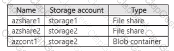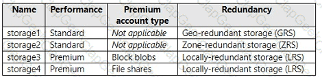 You have an Azure subscription. The subscription contains a virtual machine named VM1 that runs Windows Server. The subscription contains the storage accounts shown in the following table.