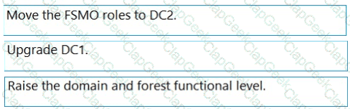 You need to raise the forest functional level to Windows Server 2016. The solution must meet the following requirements: