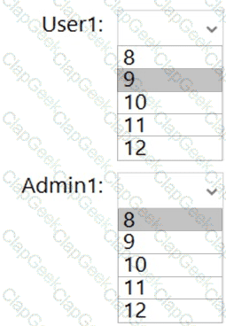 What is the effective minimum password length for User1 and Admin1? To answer, select the appropriate options in the answer area.