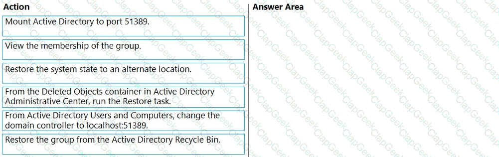 Your network contains an Active Directory Domain Services (AD DS) domain that has the Active Directory Recycle Bin enabled. All domain controllers are backed up daily.