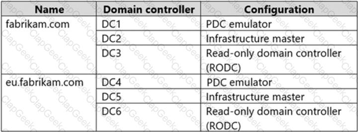 Your network contains an Active Directory Domain Services (AD DS) forest. The forest contains the domains shown in the following table.