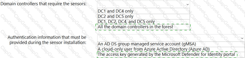You need to install the sensors on the minimum number of domain controllers. The solution must ensure that Defender for Identity will detect all the security risks in both the domains.