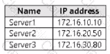 Your network contains an Active Directory Domain Services (AD DS) domain. The domain contains servers that run Windows Server as shown in the following table.