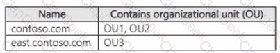Your on-premises network contains an Active Directory Domain Services (AD DS) forest named contoso.com. The forest contains the domains shown in the following table.